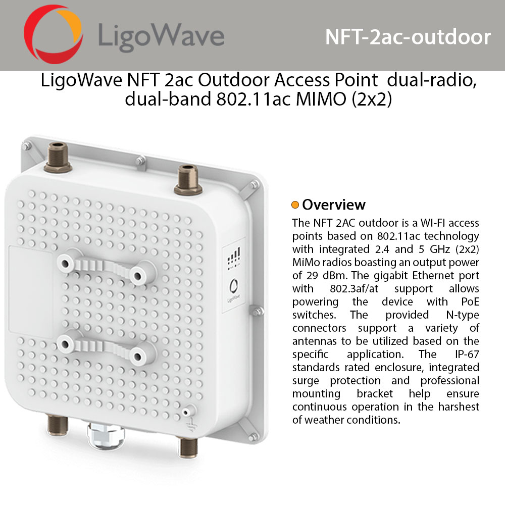 Nft2acoutdoor Ligowave Nft 2ac Outdoor Access Point Dual-radio Dual-band 80211ac Mimo 2x2